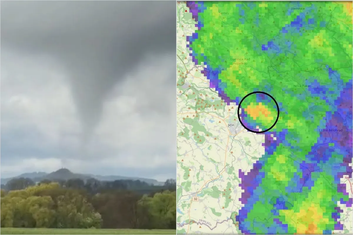 V Česku zaznamenali prvé tornádo tohto roka. Objavilo sa v popoludňajších hodinách v oblasti východne od Jičína na Královohradecku a vzniklo na nenápadnej prehánke.