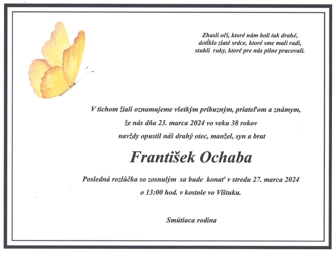 Osudný deň nastal v pondelok 25. marca 2024, kedy jeho manželka Michaela Ochabová uverejnila smútočnú správu s popisom „Stretneme sa...“ Napriek obrovskému úsiliu a podpore mnohých ľudí, František Ochaba podľahol svojmu boju so zákernou chorobou vo veku 38 rokov.