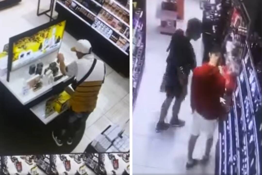 Na prvom videu je vidieť muža v bielej šiltovke, bielo hnedom tričku, čiernych nohaviciach a s malou taškou cez plece, ako vošiel na začiatok predajne, z výstavného pultu zobral niekoľko voňaviek a rýchlo odišiel. Druhý kamerový záznam ukazuje dvoch mladých mužov, jeden bol oblečený v červenej mikine a bielych kraťasoch, druhý mal na sebe čierne tričko aj krátke čierne nohavice. Obaja mladíci si v parfumérií prezerali voňavky, pričom jeden z nich kontroloval, či na nich niekto pozerá. Následne si obaja vložili do tašky voňavky a ďalej si prezerali vyložený tovar.