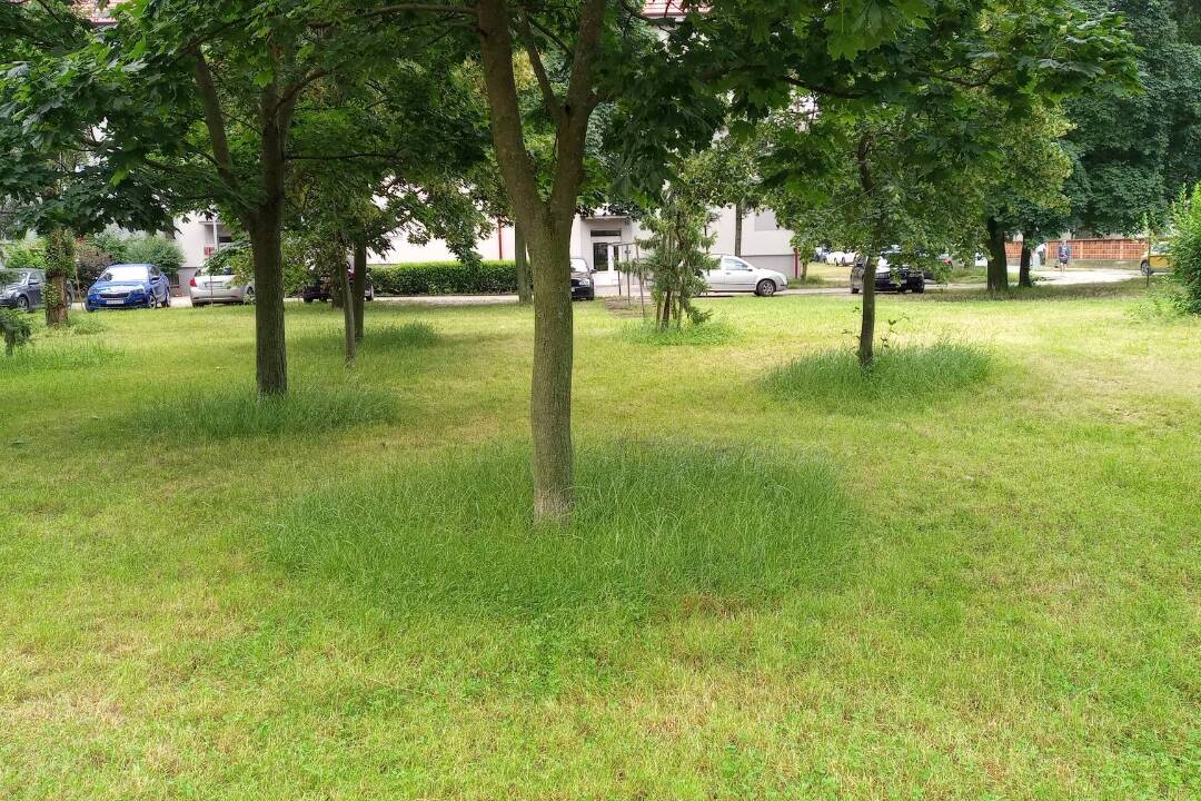 Nejde o nedokončenú prácu! Mozaikové kosenie v Seredi chráni stromy pred horúčavou