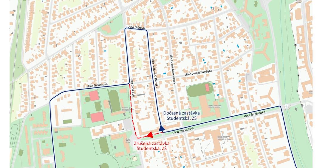 - Smer na Prednádražie - zastávka Študentská, ZŠ v smere na Ulicu Jána Bottu bude premiestnená na Ulicu Štefana C. Parráka.