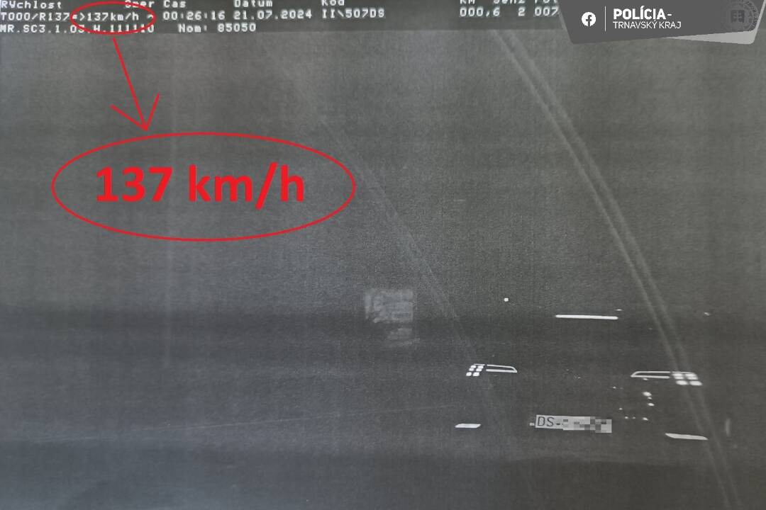 Dunajskostredskí dopravní policajti namerali, počas nočnej služby, vodiča na aute VW Golf, priamo v meste Dunajská Streda. Policajti zastavili 22-ročného vodiča, ktorý na Galantskej ceste rozbehol svoje auto na neuveriteľných 137 km/h. Maximálnu povolenú rýchlosť tak prekročil až o 87 km/h.