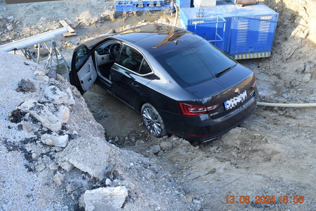 34-ročný vodič bez vodičského preukazu, sa pravdepodobne plne nevenoval šoférovaniu a nesledoval situáciu na ceste, a prednou časťou auta Škoda Superb prerazil oplotenie stavby. To ho však nezastavilo a s autom skončil až na dne stavebnej jamy.