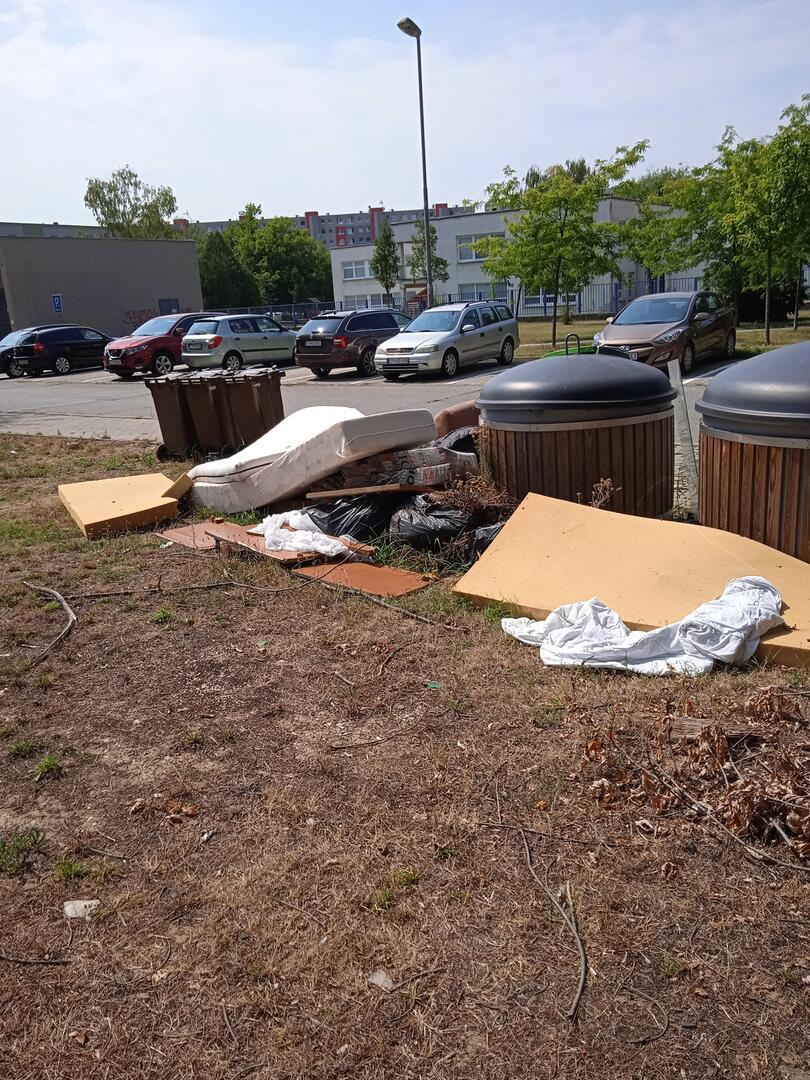 Niekto ku kontajnerom vyhodil staré matrace a zvyšky z nich. Okrem toho by ste tam našli textilný odpad, drevené dosky a čierne vrecia s neznámym obsahom. Smetisko nahnevalo aj ďalších používateľov, ktorí takéto konanie nepochopili, no odsúdili.