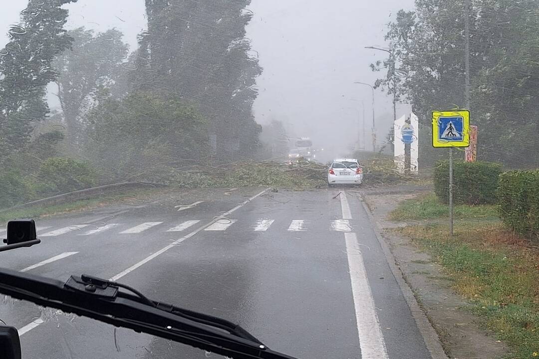 AKTUALIZOVANÉ: Na moste pred Hlohovcom spadol v dôsledku silnej búrky strom. Na úseku zasahovali hasiči