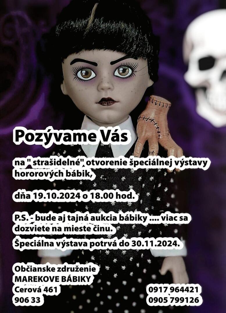 Táto jedinečná výstava bude otvorená až do 30. novembra 2024. Podujatie organizuje Občianske združenie MAREKOVE BÁBIKY, ktoré sa postará o to, aby si každý návštevník odniesol nezabudnuteľný zážitok.