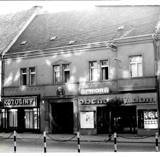 Na fotografii je zachytený obchodný dom na pešej zóne, ktorý sa tam nachádza doteraz. A hoci sa niektoré obchody zmenili, jedno na ňom zostával rovnaké - okrasná hlava sochy, ktorá sa dnes týči nad nápisom Obchodný dom.