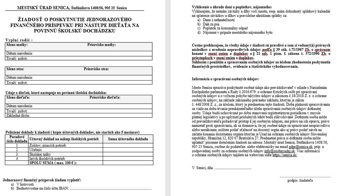 Zdroj: senica.sk/Vzor žiadosti
