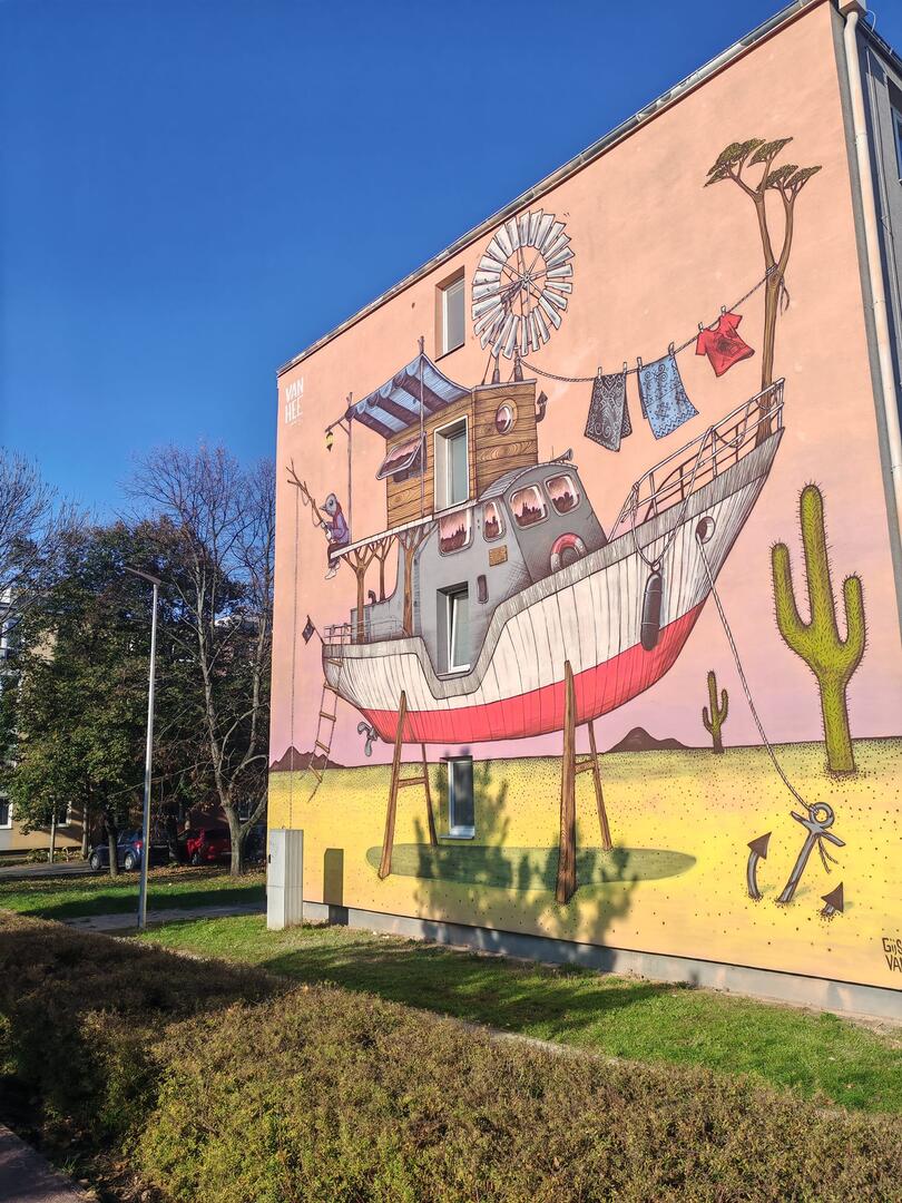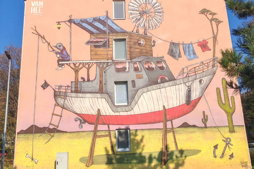 Tak ako na Golianovej ulici či na ulici Ludvika van Beethovena skrášľujú paneláky rôzne maľby, jeden nový pribudol aj na činžiaku na Bučianskej ulici. Maľba znázorňujúca loď uprostred púšte zaujala Trnavčana Petra, ktorý túto novinku zdieľal na sociálnych sieťach.