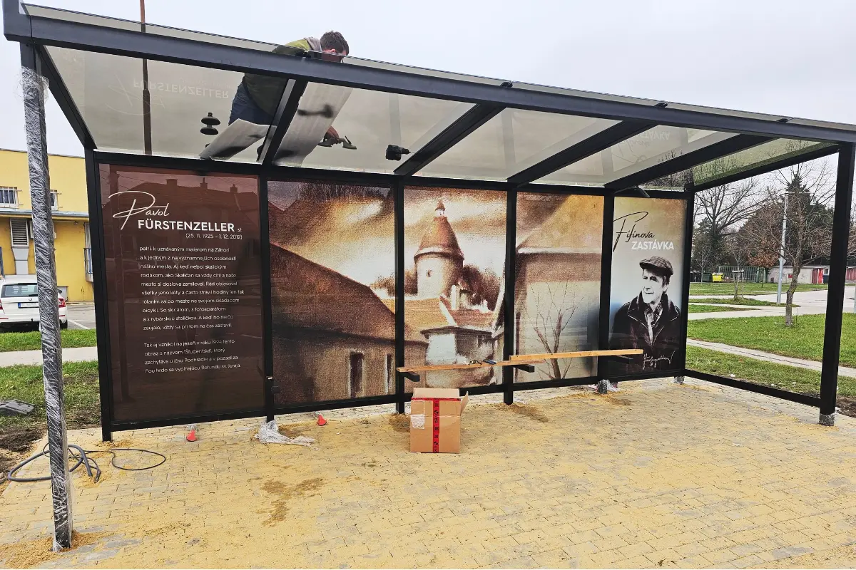 Autobusovú zastávku s dizajnom diela Pavla Fürstenzellera, prezývaného Fifina, už čoskoro dokončia. Ako informovalo mesto na sociálnej sieti, v utorok bolo nainštalované vrchné sklo a dizajn zadnej strany zastávky. Pozostáva z obrazu Študentská, jeho popisu a fotografie autora.