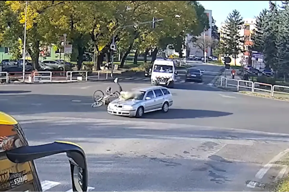 VIDEO: Nehoda v Seredi mohla skončiť tragédiou. Vodič v nepozornosti zrazil cyklistu na križovatke