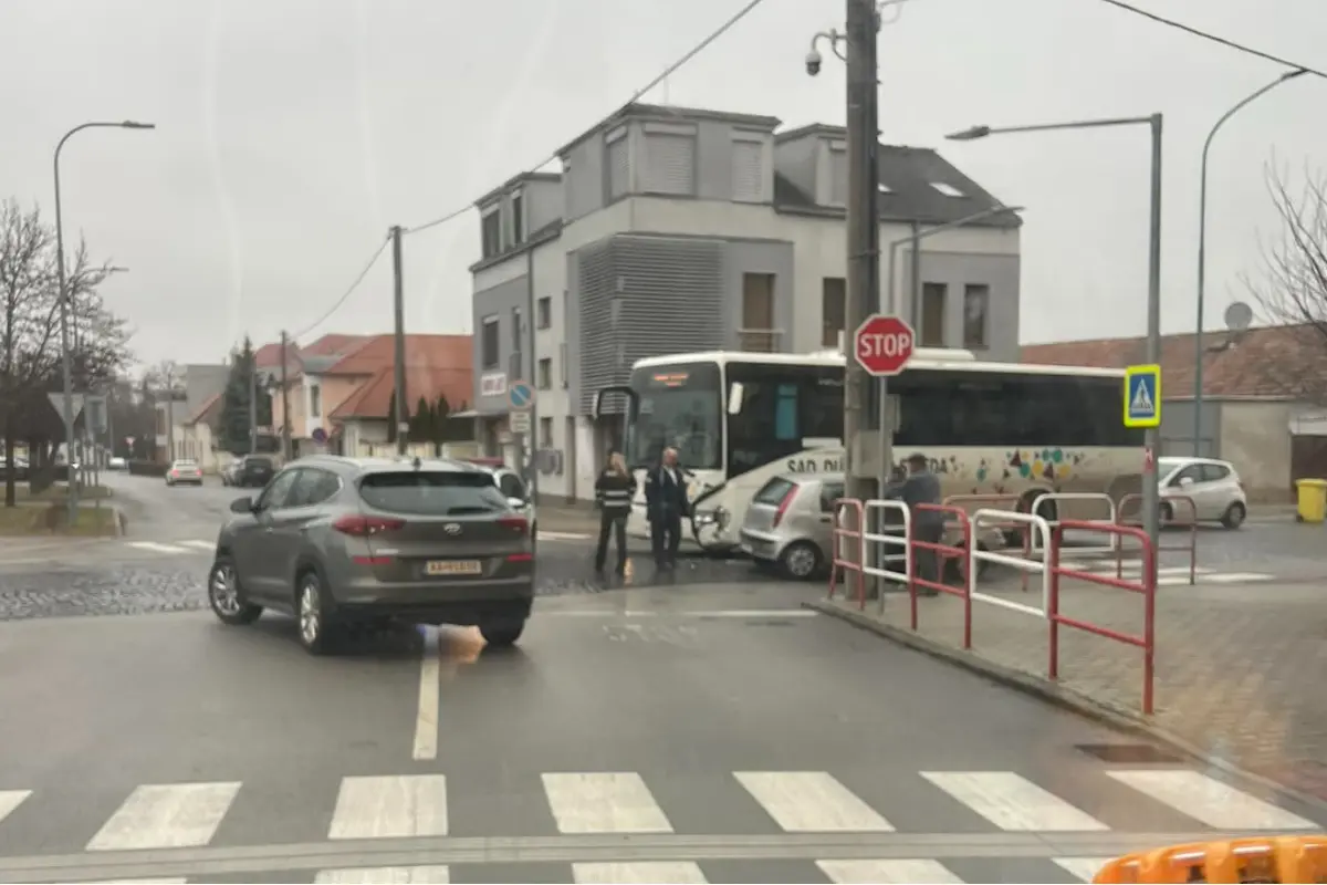V Hlohovci došlo k nehode autobusu s autom. Vodičom hrozí zdržanie, odporúča sa obchádzka