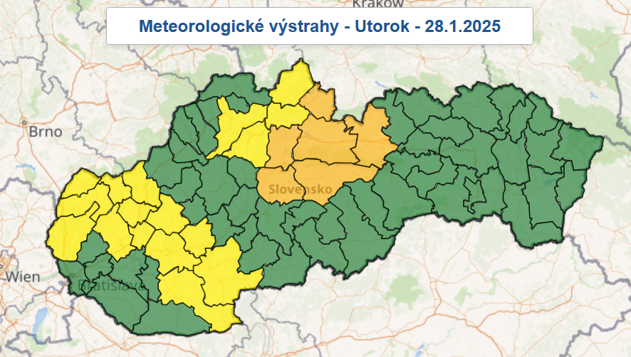 V okresoch Tvrdošín, Liptovský Mikuláš, Poprad a Brezno SHMÚ vydal v utorok od 12:00 do 22:00 druhostupňovú výstrahu. Vietor môže dosiahnuť priemernú rýchlosť 90 až 105 kilometrov za hodinu, čo predstavuje silnú až mohutnú víchricu.