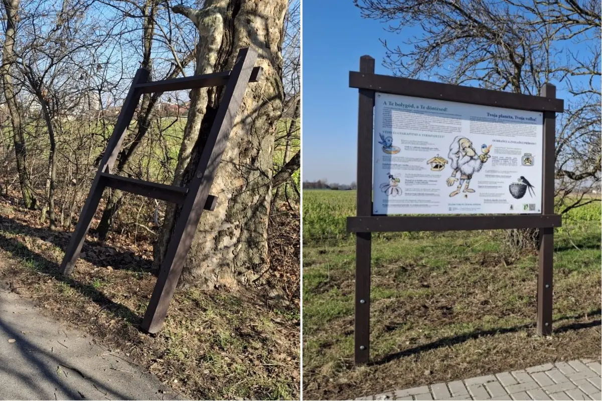 V posledných dňoch pritom došlo k ďalšiemu poškodeniu tabúľ, tentokrát pri cyklotrase Négyeseki. Občianske združenie DunaVit tu v roku 2023 umiestnilo informačné tabule pri náučnom chodníku, ktoré mali zvýšiť povedomie o environmentálnom správaní. Tabule vynikali originálnymi ilustráciami od grafika Tibora Juhásza. Bohužiaľ, dve z nich zmizli už v decembri, a v noci z 1. na 2. februára niekto odstránil aj prázdne konštrukcie tabúľ a vhodil ich do priekopy. „Podľa spôsobu vykonania činu sa zdá, že ide o úmyselné poškodzovanie, pravdepodobne rovnakým páchateľom,“ uvádza mesto.