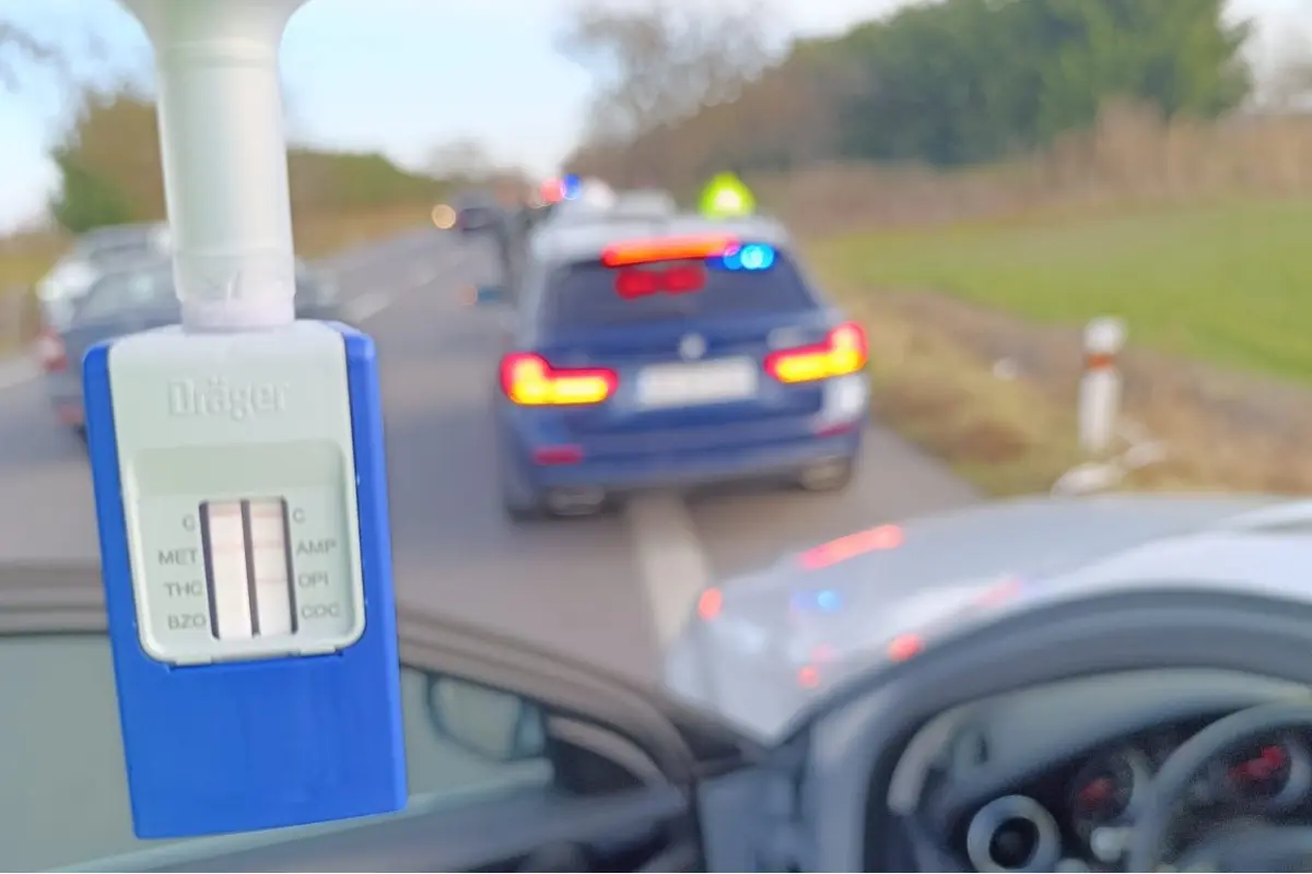 31-ročná žena, ktorá auto šoférovala, bola podrobená dychovej skúške, ktorá bola negatívna. Policajti ju vyzvali na vykonanie jednorazového orientačného testu na drogy, ktorým bola zistená prítomnosť metamfetamínu v jej organizme. Priznala sa, že v predchádzajúcich dňoch požila návykové látky. V nemocnici poskytla vzorku krvi na toxikologické vyšetrenie. Vodičský preukaz jej bol zadržaný a ďalšia jazda zakázaná.