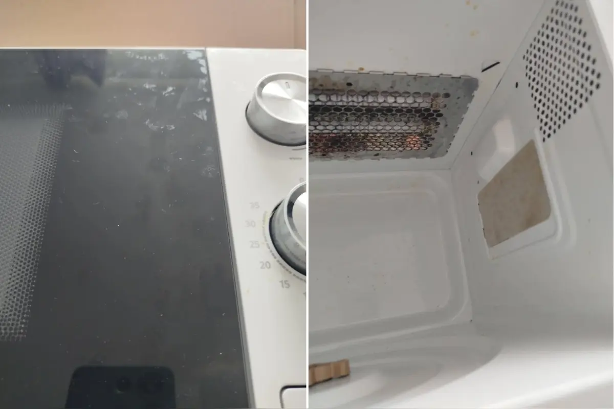 Príspevok doplnil fotografiami, ktoré ukazovali, že mikrovlnka je špinavá a zjavne už používaná. Na snímkach bolo vidno znečistenie nielen na povrchu, ale aj vo vnútri.
