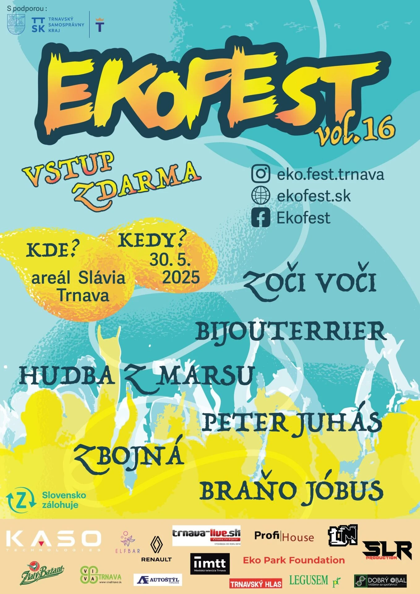 Environmentálne témy sa v priebehu posledných rokov dostávajú čoraz viac do popredia. Dôležité je začať od seba, čomu si je vedomý aj Trnavský samosprávny kraj. V súvislosti s tým sa v areáli Slávie na Rybníkovej ulici v Trnave uskutoční aj vďaka jeho finančnej podpore 16. ročník festivalu so symbolickým názvom Ekofest. Svoje brány priaznivcom ekológie a dobrej hudby otvorí už v piatok 30. mája, pričom bude úplne zadarmo.