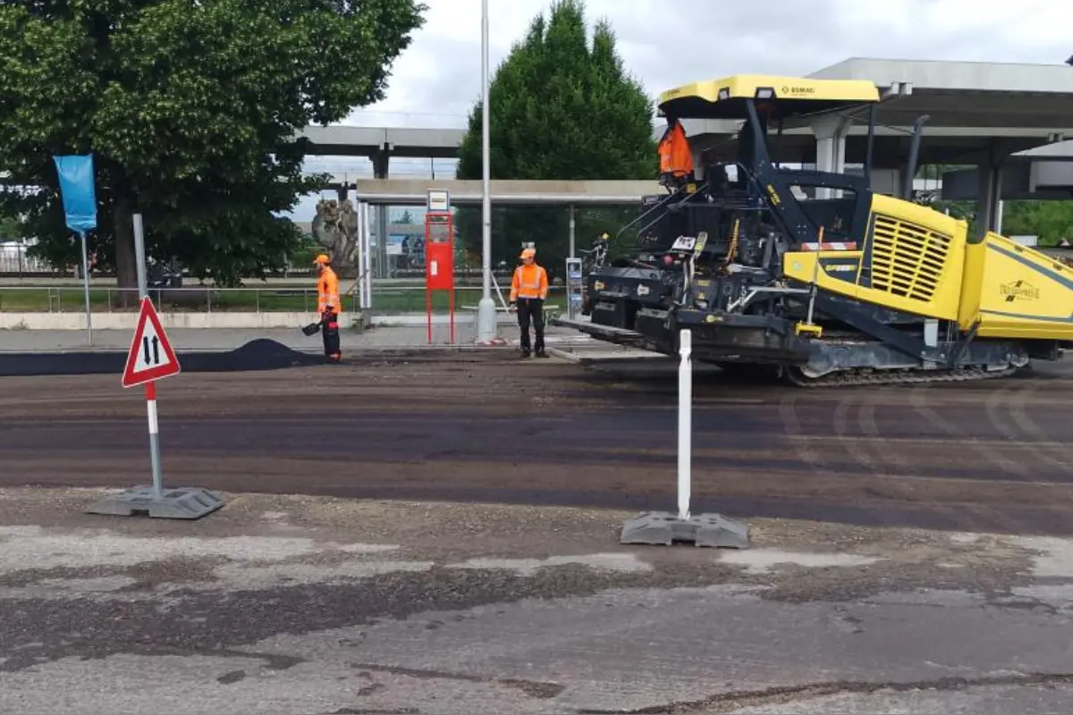 Zároveň sa dokončia práce z prvej etapy, ktoré sa týkajú pokládky vrchnej obrusnej vrstvy asfaltu na ceste a cyklochodníku, montáže stožiarov a svietidiel verejného osvetlenia, osadenia zvislého a vodorovného dopravného značenia a inštalácie signalizačných prvkov pre nevidiacich a slabozrakých.