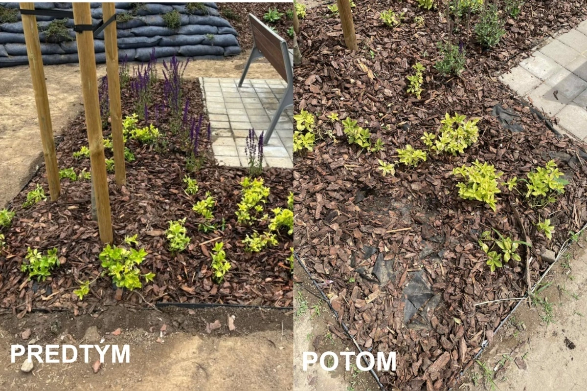 FOTO: V Hlohovci zlodeji ukradli novo vysadené rastlinky, v lokalite sa tak posilnia hliadky mestskej polície