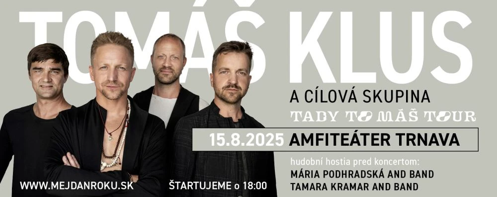 Obľúbený český spevák Tomáš Klus s jeho kapelou Cílová skupina v druhej polovici roka 2025 vyráža na turné po Slovensku, ktoré začne práve 15. augusta v Trnave. Na koncerte predstavia skladby z nového – už v poradí ôsmeho – albumu Tady to máš, ktorý sa vracia k ich pesničkárskym koreňom. Fanúšikovia sa môžu tešiť na autentický zážitok plný energie, humoru a hudobnej hĺbky. Sám Tomáš Klus o albume hovorí: „Cítil som potrebu vrátiť sa k tomu, čo ma na začiatku mojej cesty k hudbe oslovilo. Vytvárať hudbu bez zbytočných nánosov, autenticky, úprimne a sám za seba.”