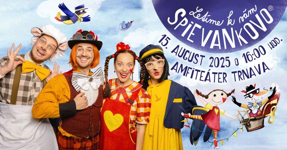 Obľúbený detský projekt Spievankovo zavíta do trnavského amfiteátru už od 16:00. Spievankovo netreba deťom, ale ani ich rodičom zvlášť predstavovať. Mária Podhradská alias Spievanka ním teší deti už od roku 2000. Tentoraz sa ako Spievanka vyberie na veľkolepú záchrannú výpravu s Lišiakom da Vincom na jeho špeciálnom lietajúcom stroji vyrobenom z recyklovaného materiálu, pričom im pomôžu aj ďalšie obľúbené postavičky zo Spievankova.