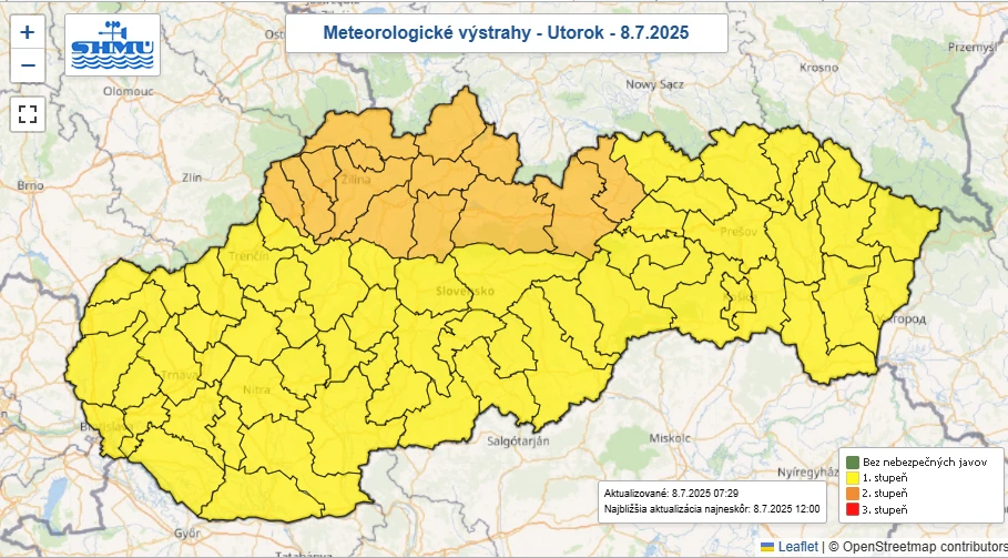V nasledujúcich dňoch treba počítať najmä na menších tokoch severného Slovenska so vzostupom vodných hladín, ktoré budú dosahovať úrovne povodňovej aktivity. Prvý stupeň výstrah pred dažďom platí pre okresy Skalica a Senica.