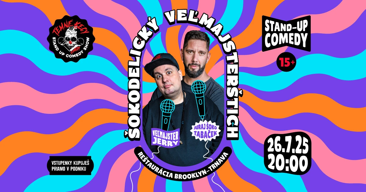 Hoci podujatie nesie zvláštny názov, ukrývajú sa v ňom mená vystupujúcich. V trnavskej reštaurácii Brooklyn sa v sobotu ukážu stand-up komici Veľmajster Jerry a Juraj Šoko Tabaček. Organizátori sľubujú dve hodiny masívnej zábavy, príbehov, vtipov, pančlajnov a aj vášho smiechu. Lístky si môžete zakúpiť iba priamo v podniku.