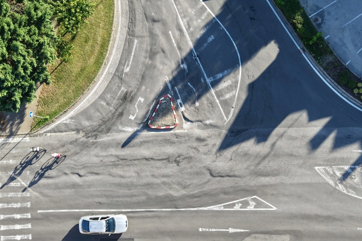 „Asfaltovanie by tu zrejme nepomohlo. Myslím, že by bolo oveľa rozumnejšie použiť betónový povrch,“ hovorí Markus, ktorý si nerovnosti na križovatke dlhodobo všíma.