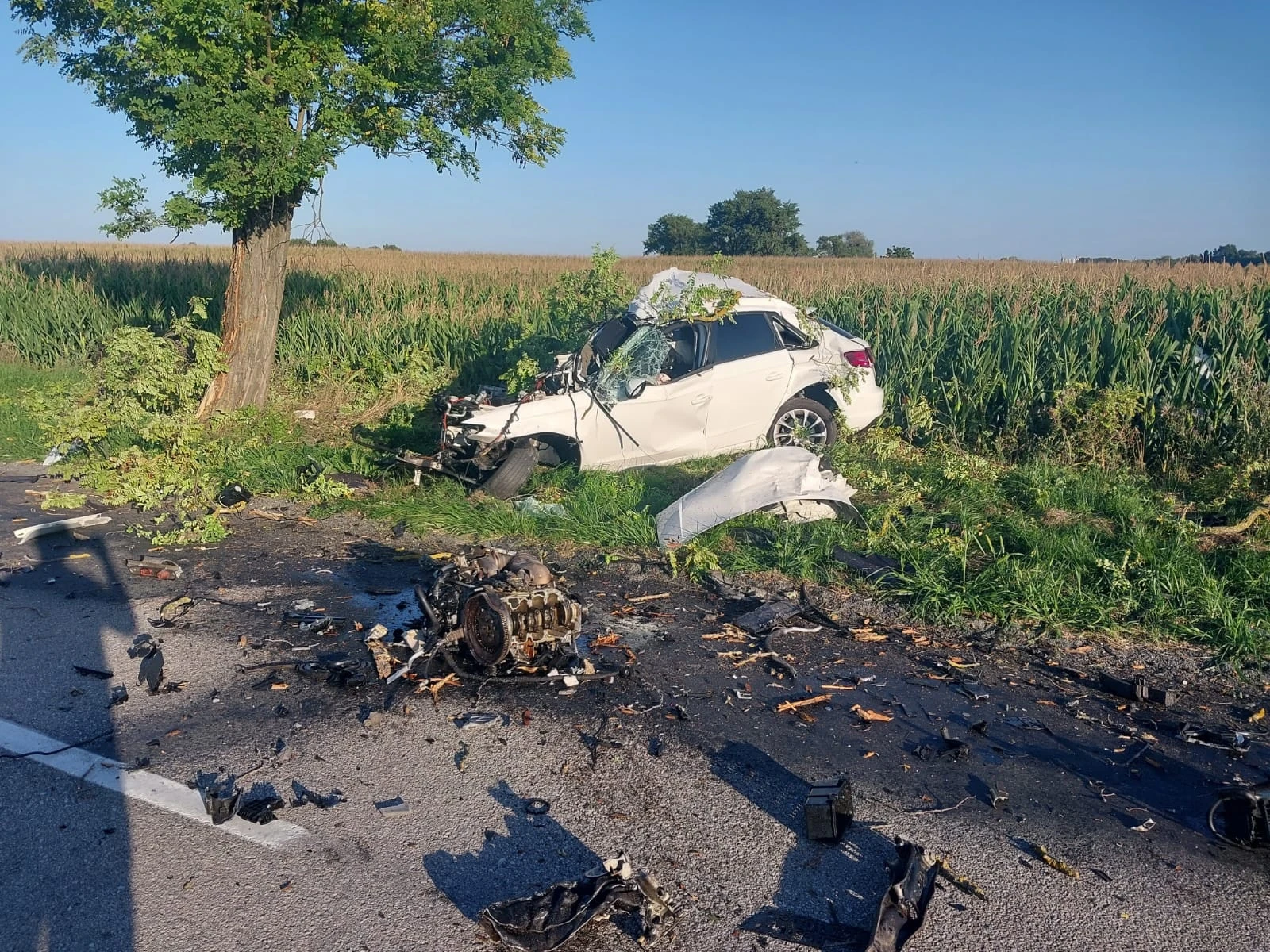 Vodič vozidla zn. Audi jazdil po ceste č. III/1397 v smere od obce Dolný Bar do obce Trhová Hradská v okrese Dunajská Streda. Z doposiaľ nezistených príčin zišiel mimo vozovku a narazil do stromu. Náraz bol taký silný, že motor skončil mimo vozidla.