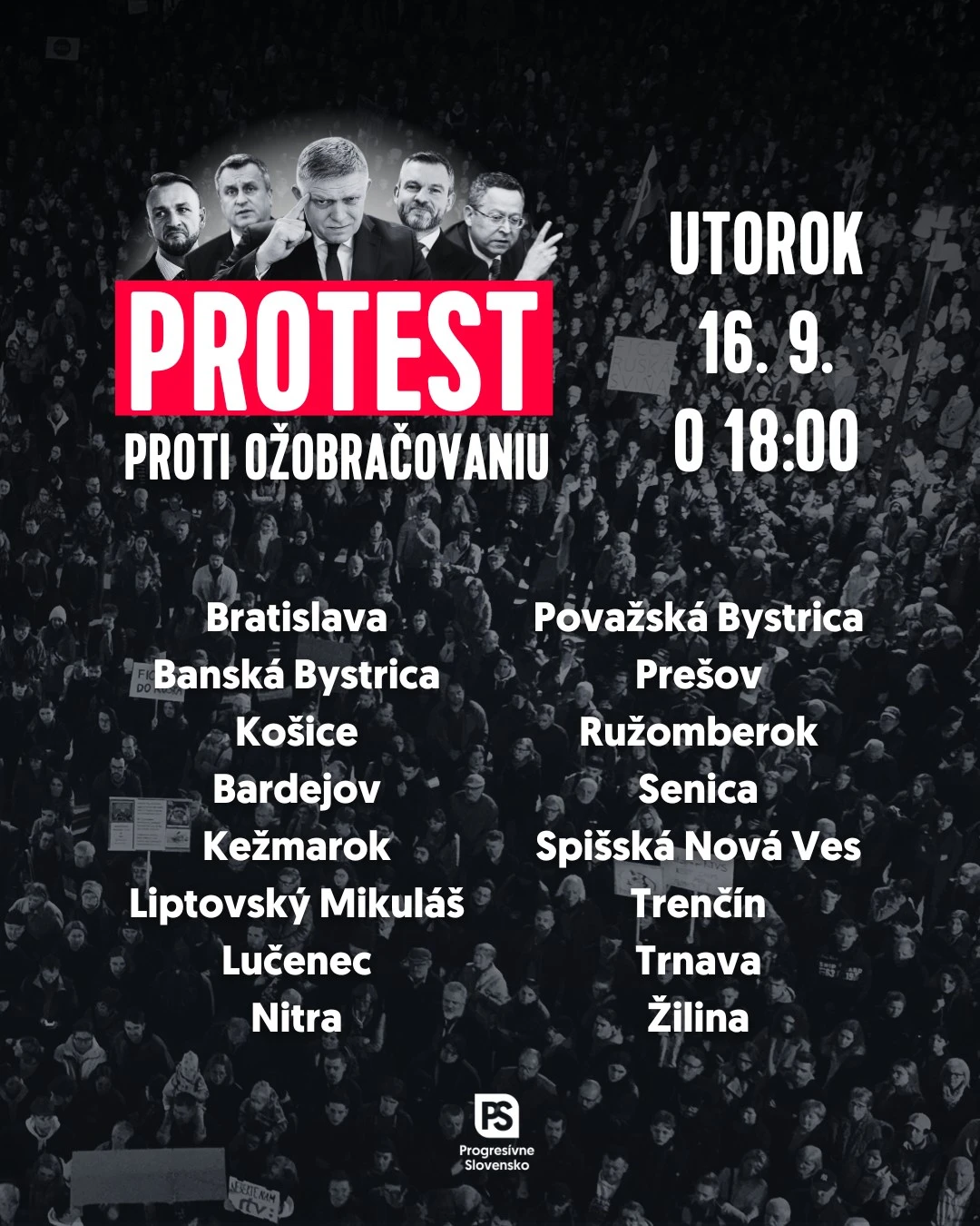 Protest v Trnave sa bude konať v utorok 16. septembra o 18:00 na Trojičnom námestí a v Senici na Námestí oslobodenia v Senici.