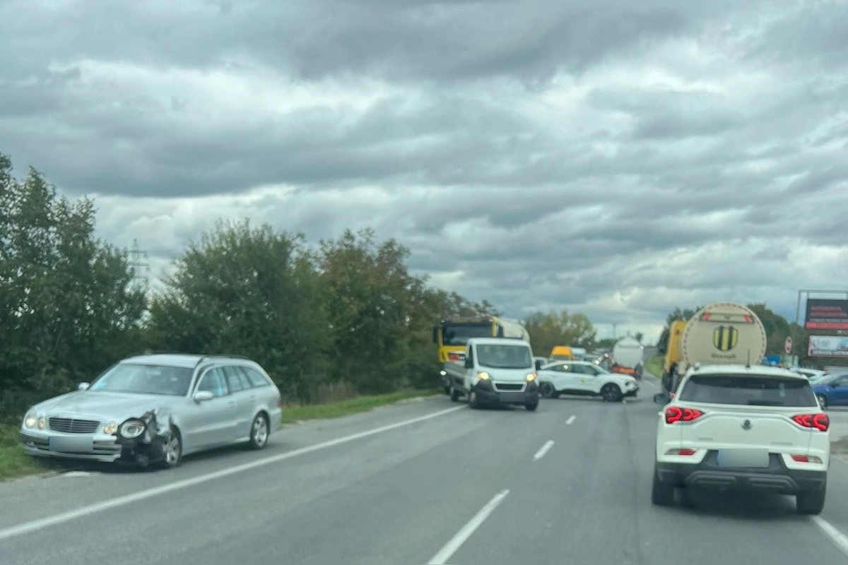 Na ceste do Hlohovca sa zrazili dve autá. Úsek je ťažko prejazdný, premávka sa spomaľuje