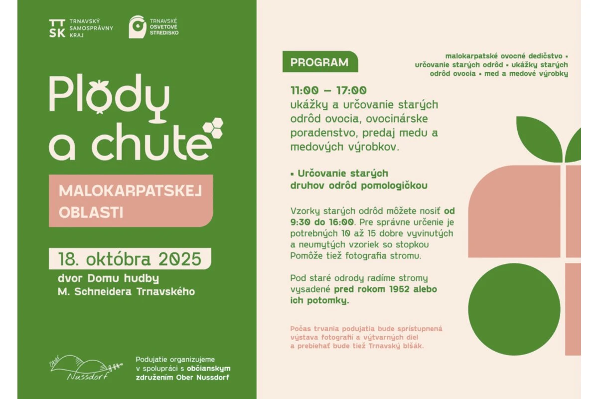 Objavte pestrosť a hodnotu pôvodných odrôd ovocia, ktoré tvoria významnú súčasť kultúrneho dedičstva nášho regiónu. Podujatie ponúkne návštevníkom jedinečnú možnosť spoznať tradičné odrody, ich históriu, význam aj osobité vlastnosti. Súčasťou programu bude aj odborné určovanie odrôd ovocia pod vedením pomologičky Ing. Evy Šidovej, PhD., ktorá návštevníkom poskytne odborné poradenstvo.