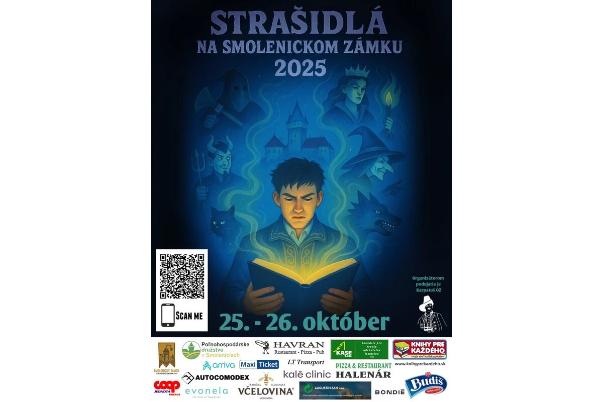 Na Smolenický zámok sa vracia obľúbené podujatie Strašidlá na Smolenickom zámku. Deviaty ročník prinesie nový príbeh inšpirovaný slovenskými povesťami a oživí kúsok histórie. Návštevníci sa vydajú po stopách trnavského alchymistu, stretnú strašidelného kata spod Michalskej brány a legendárnu krvavú grófku Báthory. Na nádvorí zámku ich čaká aj sprievodný program: vystúpenia historického šermu, strašidelný foto kútik, postavy strašidiel, remeselný trh, maľovanie na tvár a zábavné hry.