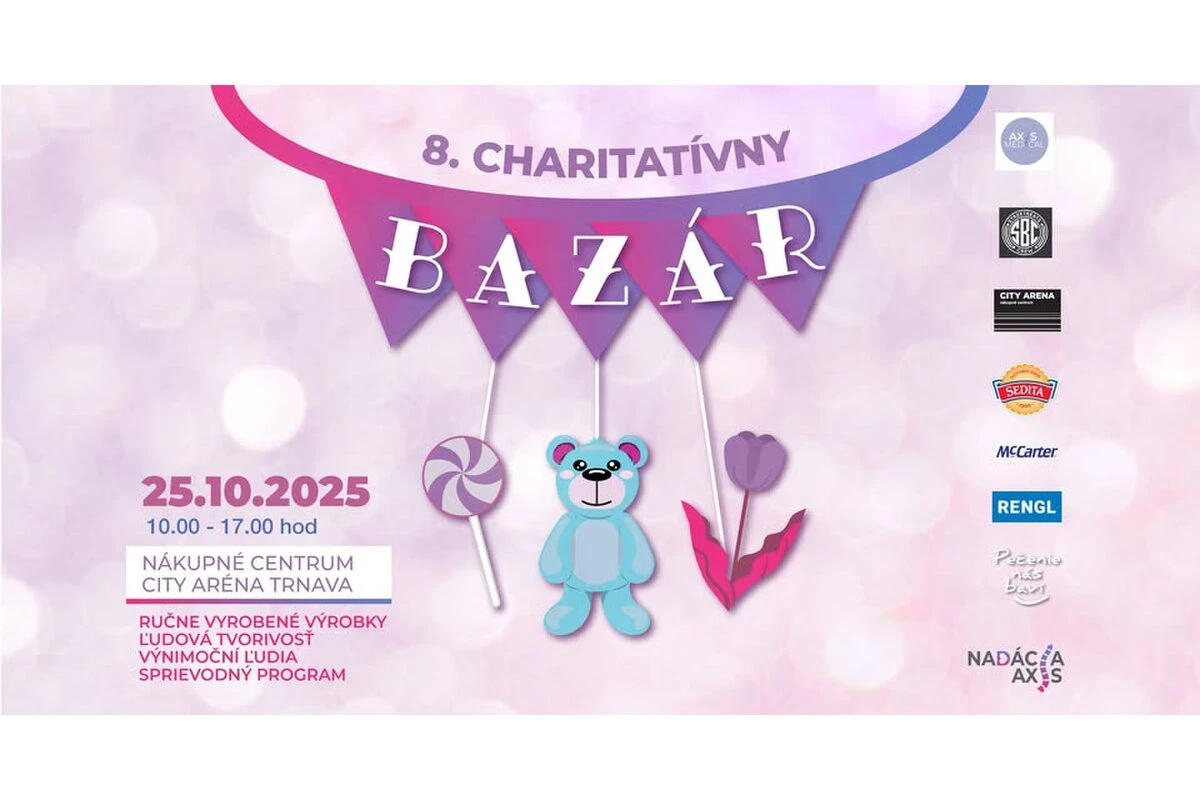 V City Aréne sa uskutoční tradičný charitatívny bazár, kde môžu návštevníci pomôcť deťom a dospelým so zdravotným postihnutím, chronickými ochoreniami alebo špeciálnymi potrebami. Čakajú vás stánky s handmade výrobkami – svietniky, hračky, dekorácie, bižutéria, oblečenie, obrazy, medovníky či domáce koláčiky – každý s príbehom rodín, ktoré ich pripravili. Program spríjemní vystúpenie tanečnej školy Streetbeats Crew. Výťažok z predaja pomôže financovať terapie, zdravotné pomôcky a podporí projekt Poradňa pre rizikové deti Nadácie AXIS, takže každý zakúpený výrobok priamo pomáha konkrétnym ľuďom.