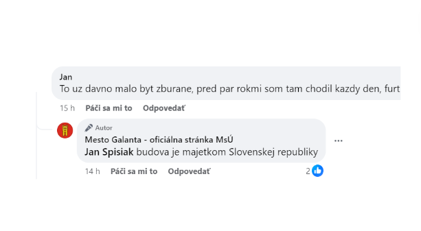 Z diskusie pod príspevkom mesta je však zrejmé, že obyvatelia so stavom budovy spokojní nie sú. „To už dávno malo byť zbúrané,“ napísal pod príspevok na Facebooku mesta nespokojný obyvateľ. Radnica však tvrdí, že budova je majetkom štátu a jeho správcom Železnice Slovenskej republiky.„Žiadosť o povolenie odstránenia stavby môže žiadať vlastník nehnuteľnosti,“ informuje hovorkyňa mesta.