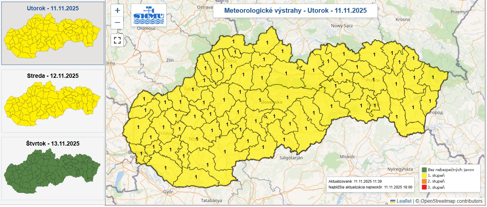 Meteorológovia zo Slovenského hydrometeorologického ústavu vydali výstrahy prvého stupňa pred hmlou, ktoré platia pre celé územie Slovenska, vrátane Trnavského kraja. V utorok 11. novembra sa očakáva výskyt hustých hmiel so zníženou dohľadnosťou od 50 do 200 metrov.