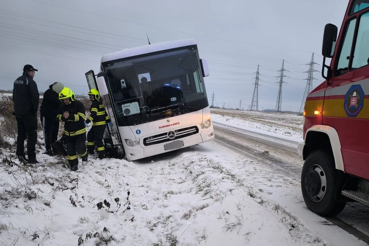 Prvé sneženie v tejto sezóne si v nedeľu ráno vyžiadalo prvú „obeť“. Šaštinskí policajti asistovali zasahujúcim hasičom pri zapadnutom autobuse. Jeho vodič pravdepodobne dostal šmyk a zišiel mimo cestu tak, že nebolo možné otvoriť dvere.