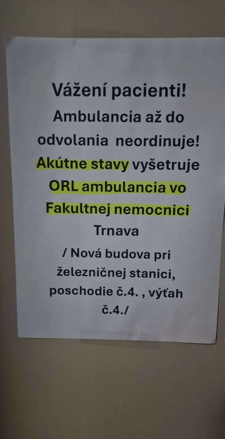 Tam zistila, že ambulancia je na 4. poschodí a výťah nefunguje, a tak si celé poschodie vyšľapala pešo, s pulzujúcou bolesťou v hlave. „Hore mi otvorila podráždená sestrička a bez jediného prejavu pochopenia mi zahlásila, že ma nevyšetria, pokiaľ nemám horúčku alebo mi netečie krv z ucha. A dvere zabuchnuté. ‚Choďte na polikliniku, veď tam robia traja,‘ zakričala cez sklo,“ opísala v známej skupine .
