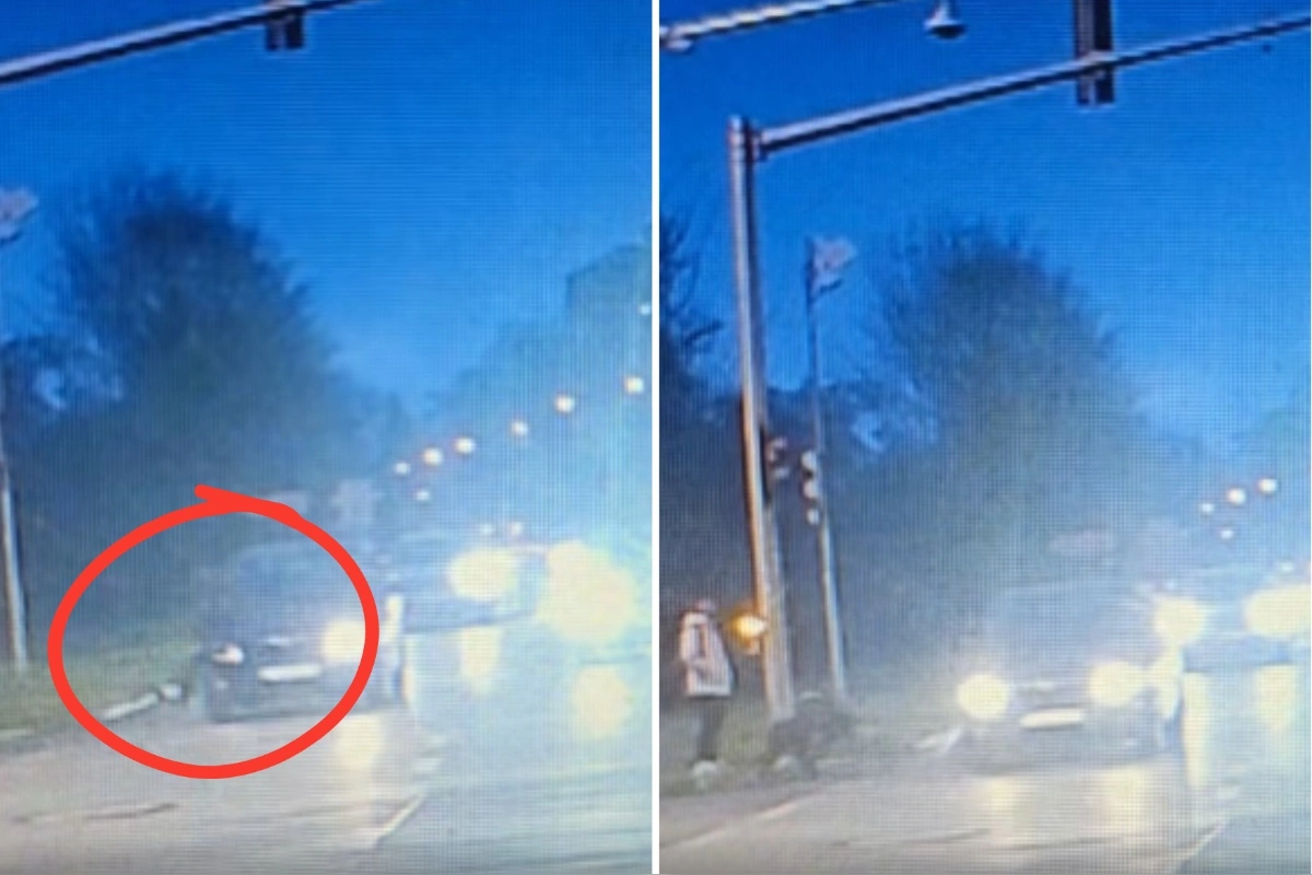 Na poslednom jazdnom pruhu, keď bol chlapec už takmer na druhej strane, ho takmer zrazilo prechádzajúce auto. Zo záznamu je vidieť, že chlapec spadol na zem, keď si všimol prichádzajúce auto, ktorému sa chcel vyhnúť. No zrejme v šoku sa rýchlo postavil a z miesta ušiel.