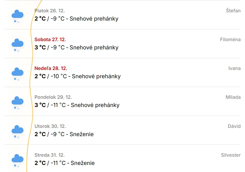Hoci bude počasie počas Vianoc ešte relatívne pokojné, pár dní po nich sa v Trnavskom kraji očakáva snehové prehánky, ktoré by malo trvať niekoľko dní a mohlo priniesť prvé biele dni zimy a typickú zimnú atmosféru.