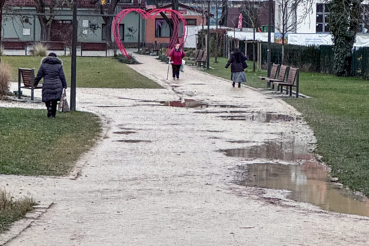 Vianoce na blate? Ružový park v Trnave mení po daždi prechádzku na skúšku nervov