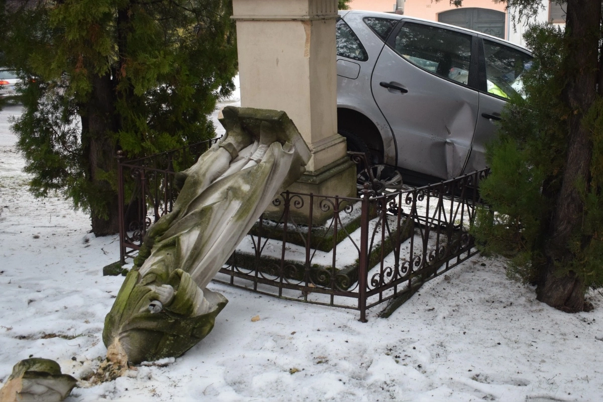Auto následne narazilo do verejného osvetlenia a pomníka, z ktorého nárazom spadla socha svätca. Policajti po príchode na miesto zistili, že vodič nemal vodičské oprávnenie. Dychová skúška síce alkohol nepotvrdila, no mladík sa pri nehode zranil a záchranári ho previezli do trnavskej nemocnice. Presné okolnosti nehody polícia naďalej vyšetruje.