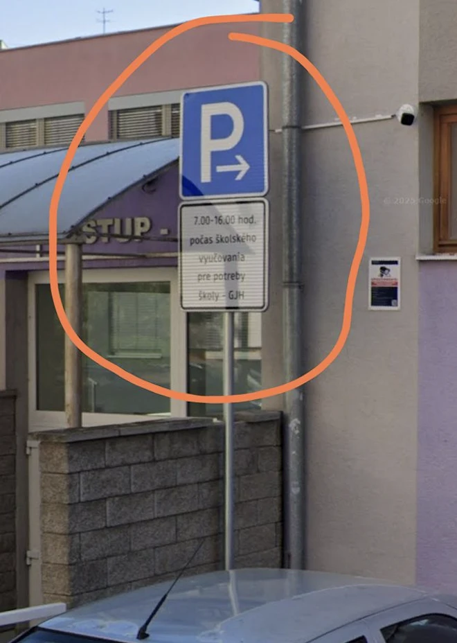 Parkoval konkrétne pri Gymnáziu Jána Hollého, kde je veľmi dôležité všímať si značenia. Okrem nejedného zákazu zastavenia pre vodičov tu platí aj parkovanie vyhradené „pre účely školy“ v presne určených hodinách.