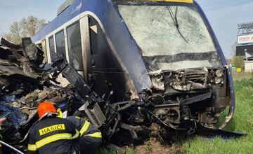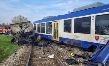 VIDEO: Na trati pri Dunajskej Strede sa zrazil vlak s kamiónom. Zrážku vodič kamiónu neprežil, desiatky ľudí sa zranilo