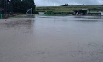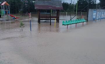 V obci Buková spôsobili búrky a silný dážď pohromu. Celý futbalový areál skončil pod vodou