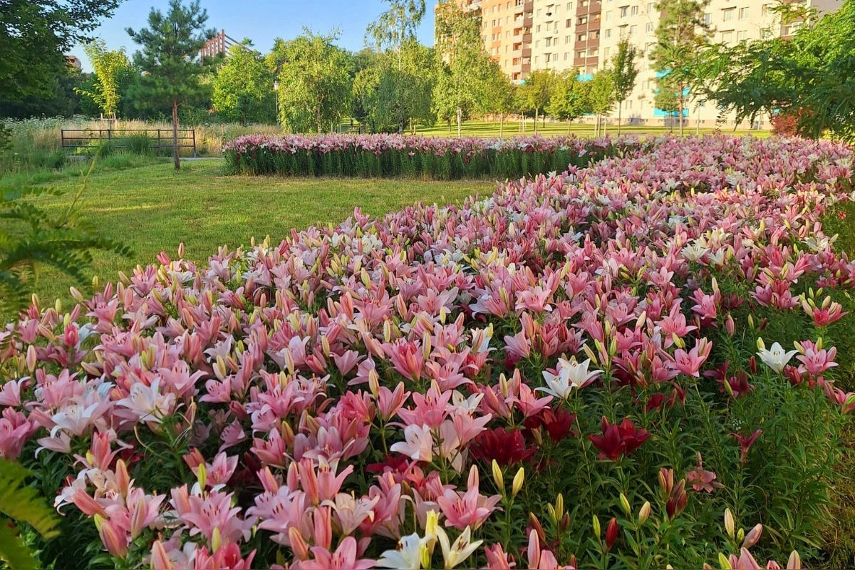 Záhon ľalií na Agátke očaril Trnavčanov. Stovky kvetov rozžiarili sídlisko, vyzerá to tam ako z rozprávky