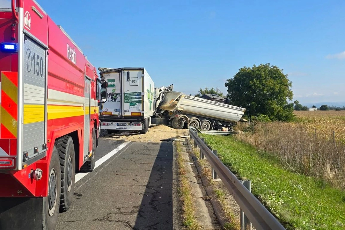 Vodiči, pozor D1 smerom od Piešťan na Trenčín je neprejazdná, zrazili sa tu tri kamióny, využite obchádzku